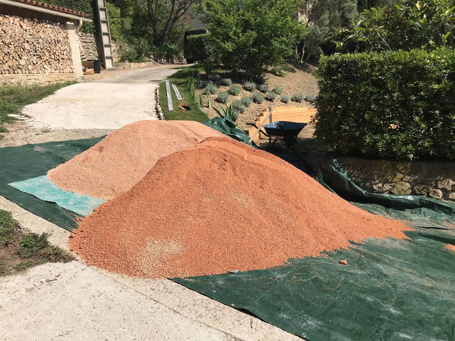 Privilégiez des graviers durs et décoratifs, comme le marbre rose de Provence. Ils conservent leur éclat, résistent aux passages répétés et offrent une finition esthétique durable. Cela réduit également l’entretien et les interventions correctives.