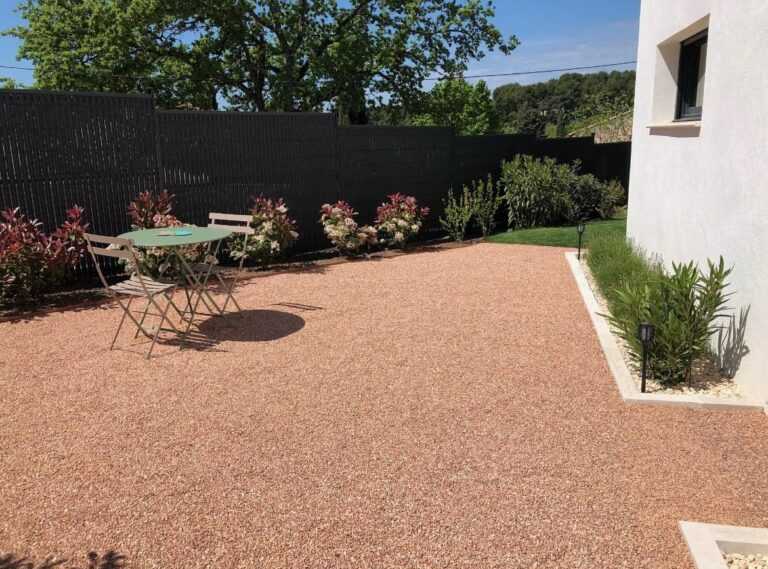L’avantage d’une terrasse en gravier décoratif, c’est sa longévité. Les terrasses minérales, qu’il s’agisse de petites cours ou de vastes terrasses de piscine, s’adaptent à toutes les envies et nécessitent très peu d’entretien. L’aménagement d’une terrasse en gravier est un investissement durable qui sublime n’importe quel extérieur.